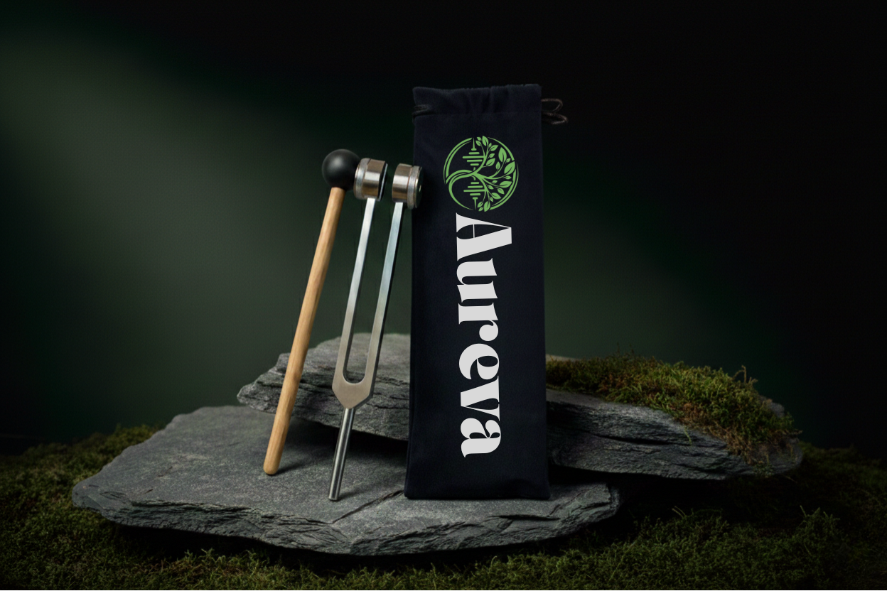 The 128 Hz frequency does something different: it uses bone conduction. When you activate the fork and place it on a bony area (sternum, spine, behind the ear), the vibration travels through your skeletal structure directly to the nerves underneath.
